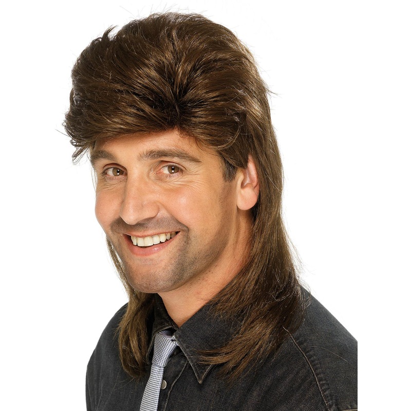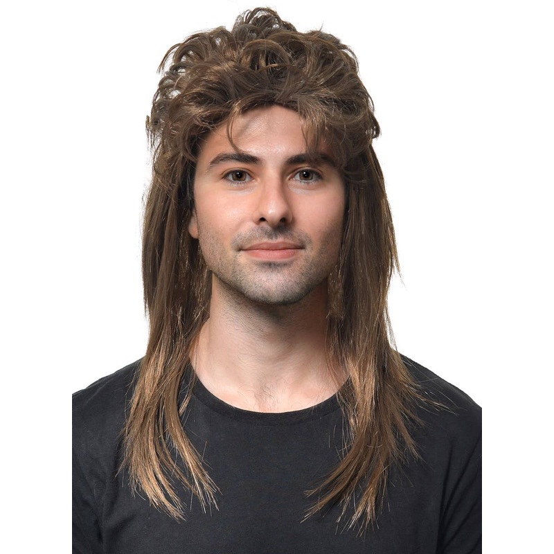Classic Brown Mullet Mens 80s Costume Wig